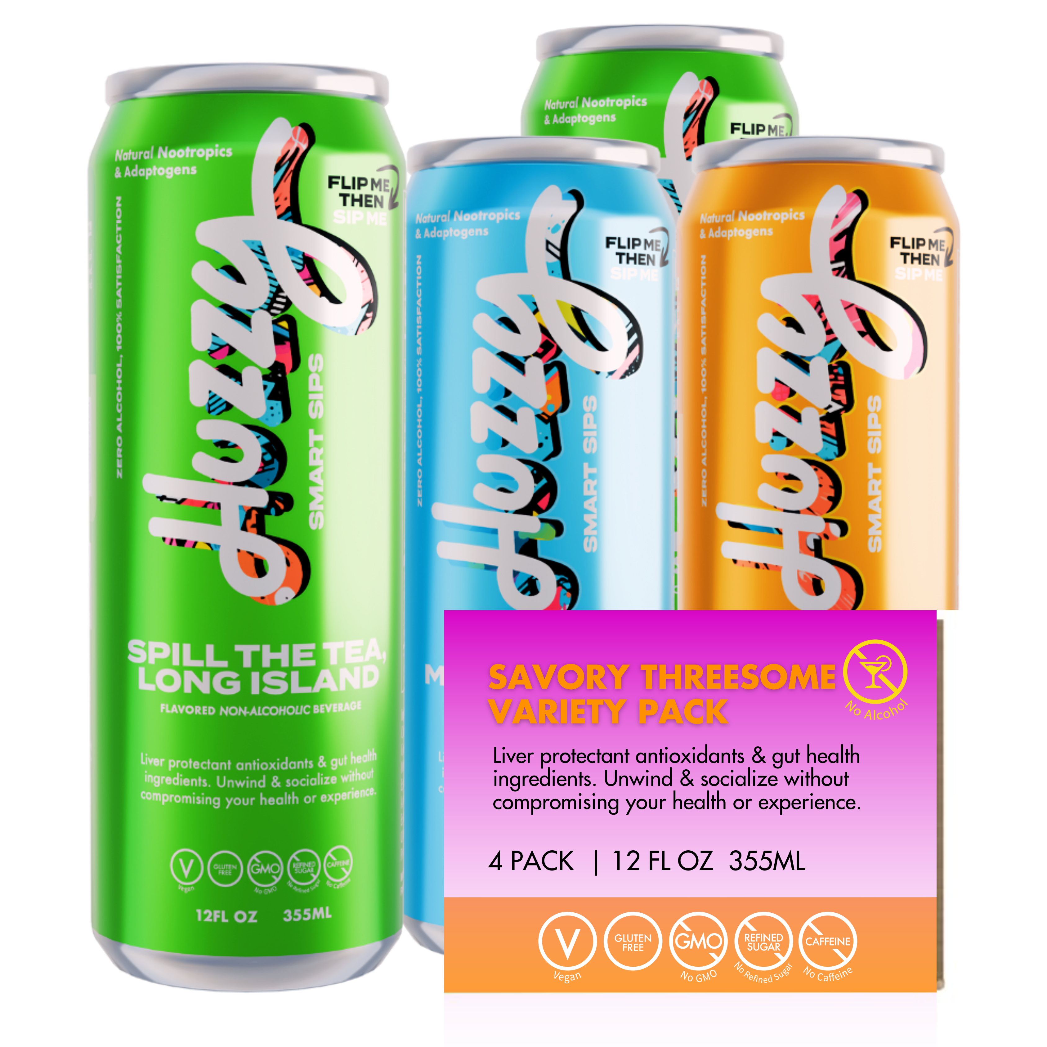 Huzzy Smart Sips are crafted with a curated list of liver protecting properties, detoxifying antioxidants, and our proprietary blend of euphoric enhancing ingredients that'll keep you in high spirits all night long.